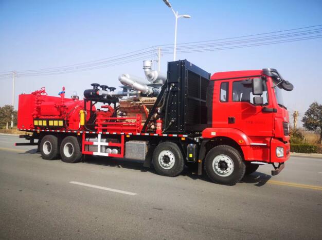 2023年3月18日,榮豐石油自主研發的YLC2000型壓裂車制造完成進入負荷調試。其主要由汽車底盤、柴油發動機、液力變速箱、電控系統、壓裂泵及其輔助系統等組成。設備主要用于油氣井的壓裂、注水和酸化等施工作業,設備能進行單機和聯機作業,可遠程進行控制及操作。